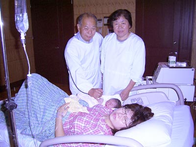 その後別室に連れて行かれ、再度羊水を吸い出し、ベビーオイルで全身を拭く。