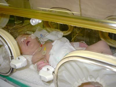 保育器に入れられました。 こんなに大きいのに・・・。 別に無菌というわけではありませんが、それでも感染する危険がかなり下がるそうです。 |