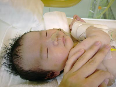 閉鎖空間である保育器の中には氷が。 泣くと体力消耗するぞ。 |