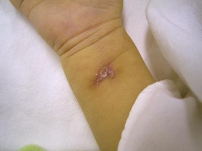右手首の皮膚炎の痕。 これは残るわな。 足のはもっと酷いって。 |