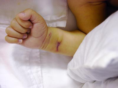 手首の血管炎の痕。 どれくらい薄くなるかな? |