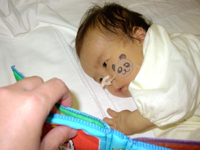 NICUと新生児室のあいだ部屋で窓越しで日光浴。
