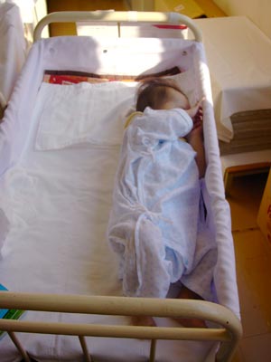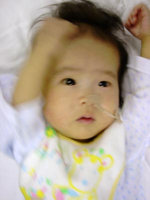 (写真:ベットの右側へいって左手の親指をおしゃぶり)