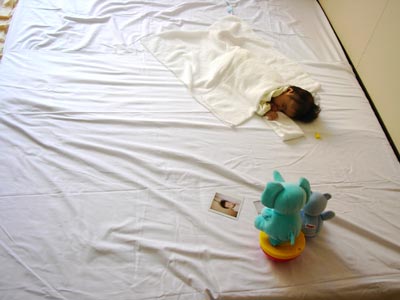 疲れたのかタオルをかけられ眠っている。(写真)