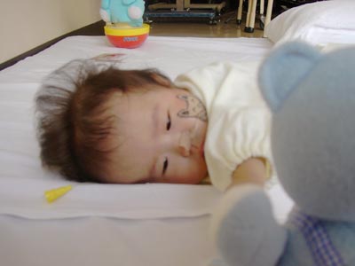 広ーい寝返り運動場。 ね、寝るなぁ! |