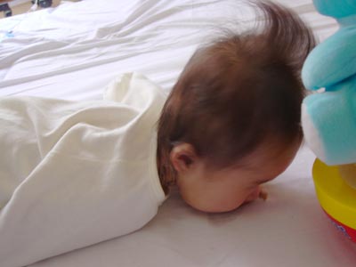 今はうつぶせにして頭を持ち上げたり、