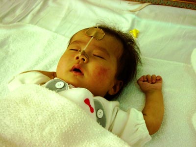 足も暖かくなったのでNICUへ移動。ぐっすり眠っているのでお昼へ。