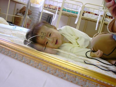 しっかり目も笑っています。 造影剤検査がうまくいき、無事にお腹のチューブが抜けますように。 |