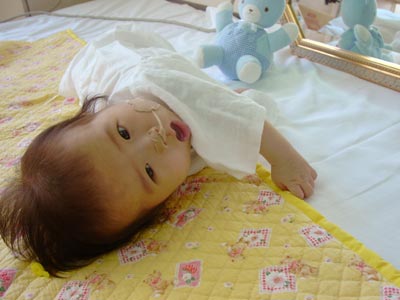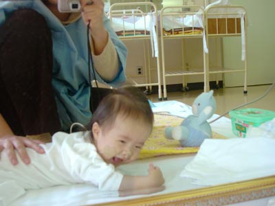 寝返りができるのは6ヶ月程度なんだそうです。 体重は増えていませんが、発達具合は順調です。 |