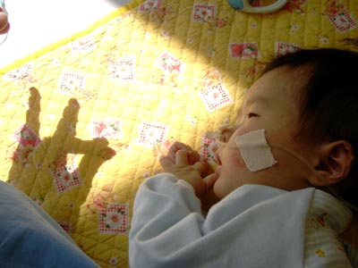 戻ってきてもまだ寝ていたので、日光浴へ連れて行き徐々に起こす。