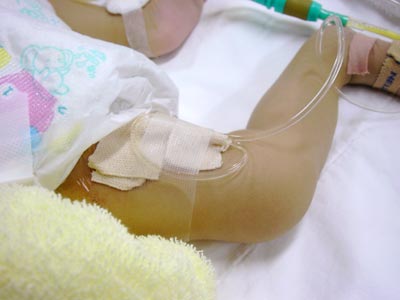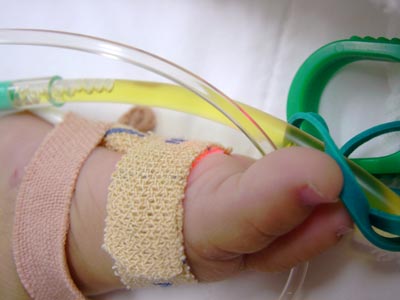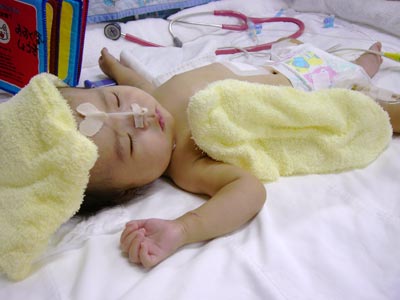 まずNICUに入ると、看護婦さんが点滴チューブの位置を調整していた。