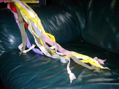 家にあったバイヤステープを束ねただけのものだけど喜んでくれる。