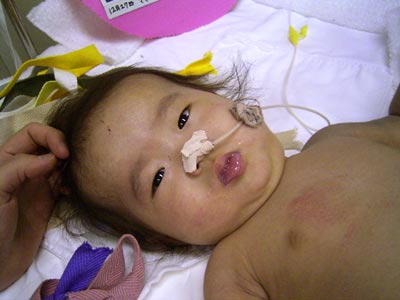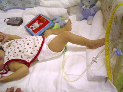 右足からIVHが入っており、おオンチンにもチューブが入っています。