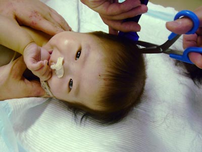 こちら側面。 普通のハサミでは難しい・・・。 幼児用バリカンってあるのかしら。 |