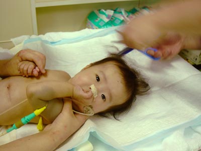 午後はお待ちかね、入浴(できないので体ふき)と散髪です。