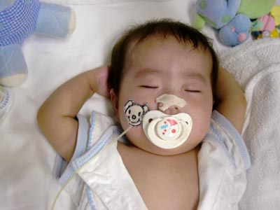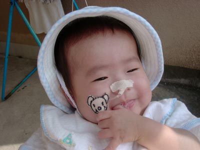 飲んで遊んで出した後は・・・ リラックスして眠りにつきます。 結構両手を頭にもってくるポーズが多い。 「へーん、ぼくちん元気だもんね」 ・・・左向きを禁じられて覚えたのでしょうか? |