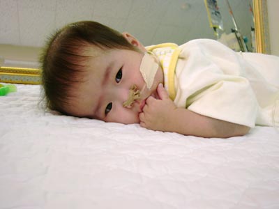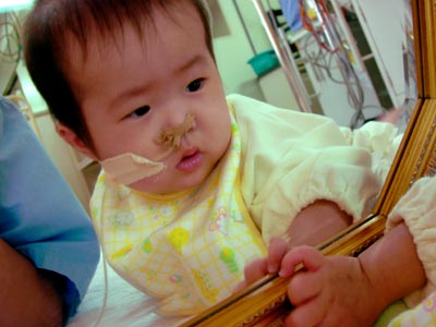 一気に飲んで少し眠そう。すぐにNICUへ連れて帰る。