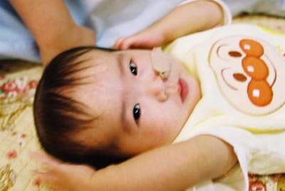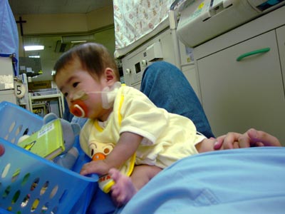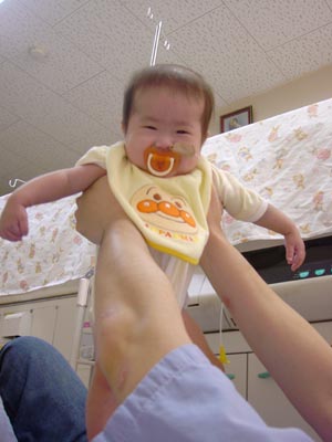 お腹の上に乗せて遊ぶが、気がつくと私と相方、すうっと意識不明に。