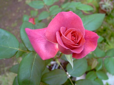 一時実家に預けてあるバラ。 また大きな花をつけてくれました。 |