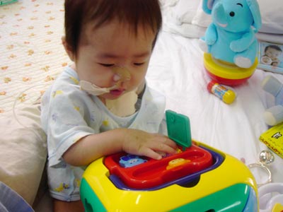 ・しばらくおもちゃで遊ぶ。三時のエレは前吸引3cc。