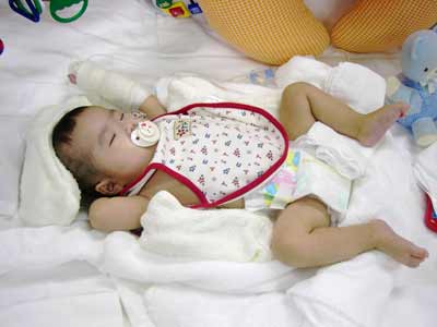 ・ベットに寝かせてしばらくすると・・・もぞもぞと寝返りを打とうとする。