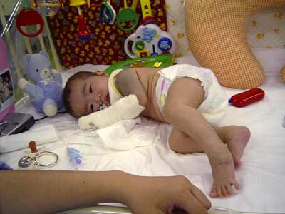 さて、息子の体重は6,189g。手の添え木(鉄の重り)も含めての数値です。