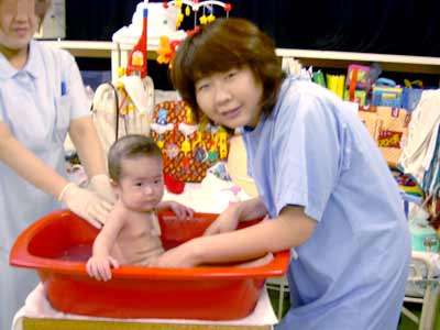 顔・頭・脇・胸・背中を清拭した後、おむつを取ると・・・
