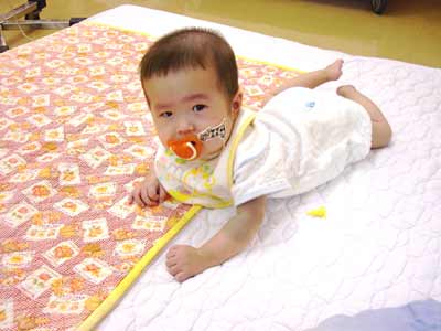 ウチの子は寝ていたが、さっそく日光浴室へ。