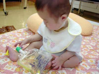 ハイハイに目覚めたか? 動くと、IVHが引っ張られます。 元気になったのは嬉しいですが、 大変なのはこれからです。 |