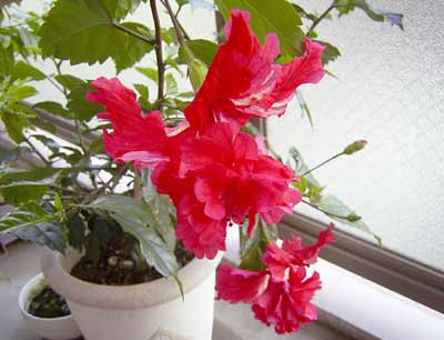 ベランダに咲くハイビスカス。 東京のジジの植え替えも手伝ってか、 今年は次から次へと開きます。 いずれ息子と相方は東京に戻ります。 その日を私はじっと待ち続けます。 |