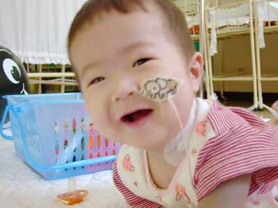 ・NICUに入っていくと、N先生が大きい口を開けてあやしている。
