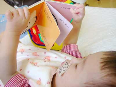 相変わらず絵本を読むのはお手のもの。 そういえば小さなときから(まだ小さいが) 得意だったモンな。 |