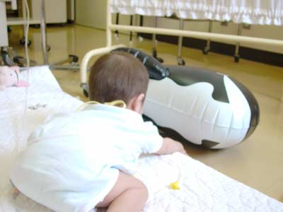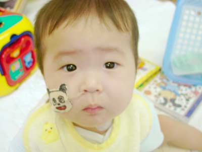 目をあけたのでおむつを替えてあげる。ムクッと起き上がり遊び始める。