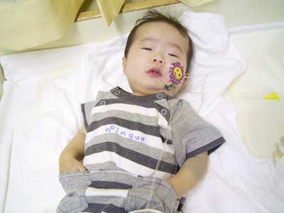 隔離室に残された息子、起きて泣いている。