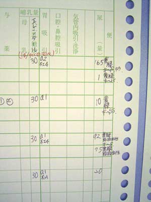 ボード。 右端が便及び状態です。 メモリは一番上が0時、1時間1メモリです。 |