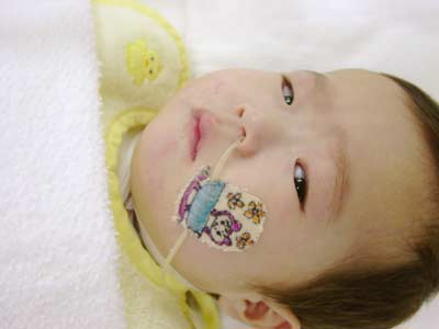 ・少し安心。急いでNICUへ。声をかけるとじーっと辛そうにこっちを見る。