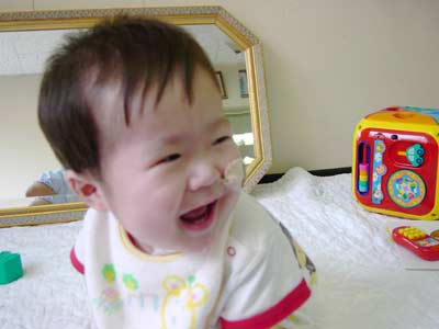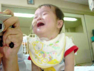 婦長さんが入ってくるとまた大喜び。すごい勢いで膝へ乗ろうと頑張る。
