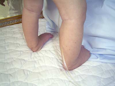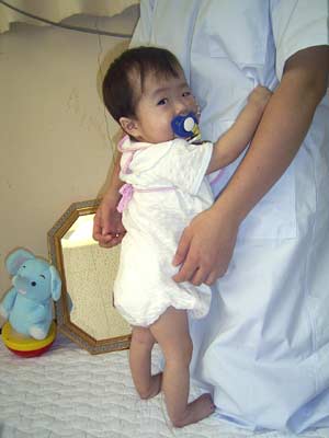 ならば!と思って立たせてみると・・・ 何とかつかまり立ちもOKです! やる気のない時は、お尻を突きだし座ろうとします。 |