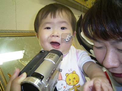 ビデオカメラも大好き! モニタに映る自分の姿に興奮し、ヨダレをだらだら。 |
