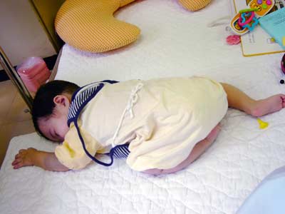 ・お昼から帰ってくると子は熟睡。すぐに日光浴室へ。