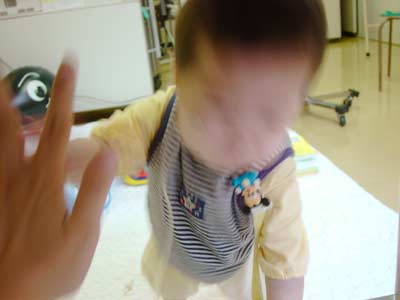これも新技その2、「お願いお願い」。 両手を握り、上下させます。 相方は「お願いお願い」と言って効かせているのですが、先生や看護婦さんが「ありがとありがと」「ちょうだいちょうだい」と好き勝手言うので、息子は何でもイイやって感じでやってます(笑)。 |