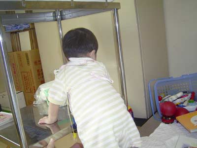 なんて思っていると・・・ 台に登っちゃいました! やっぱり成長しているなぁ! |