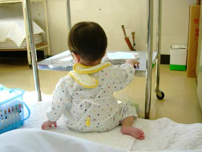 と怒られる。当の子は知らん顔で先生の持っている医療器具に釘付け。