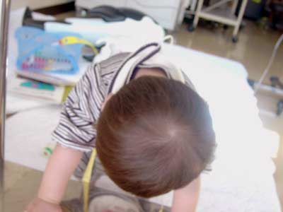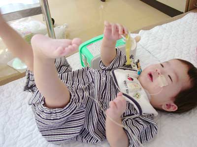 ・首のIVHループのテープをかえてもらう。大泣き。
