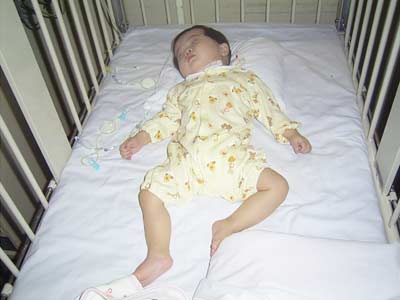 戻ってくると、息子にはいつものハイカリック液ベースの輸液がつながれています。