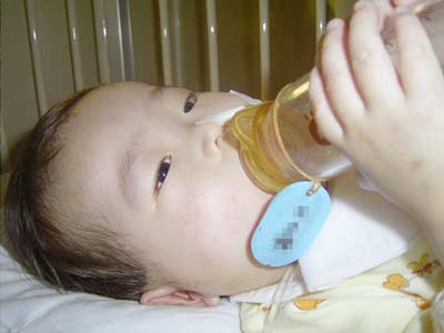 ほ乳瓶をくわえさすと、本能のように一気に飲み干したものの、