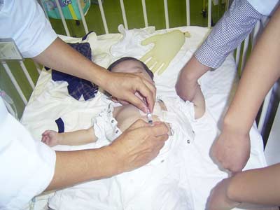 テープを貼り替え、ルートにヘパリンを満たします。 これでN先生による全ての処置が終わりました。 本当にお世話になりました。 ありがとうございました。 |