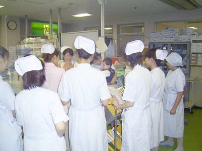 看護婦さんの申し送りのミーティングの輪に加えます。
