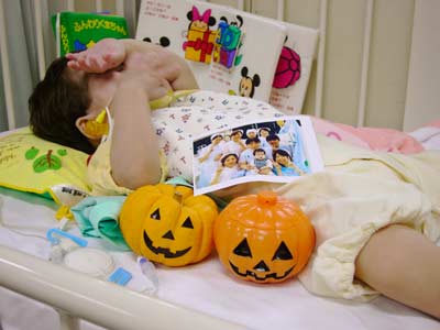 発熱39.3度。 頭痛いのポーズです。 KMさん、カボチャありがとうございました。 |
