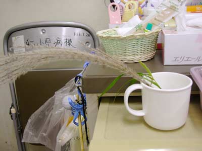 看護士のMDさんがススキの穂を採ってきてくださいました。 秋ですね。 |
